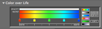 Controls how the particle opacity varies over the particle's life. Read more on the Over Life page.