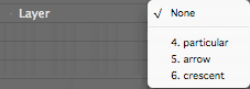 At left, the Layer popup shows all available layers. At right, those layers are present but turned off in the Timeline.