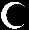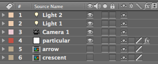 At left, a 'Crescent' bitmap image. In middle, the Crescent layer loaded into the Layer popup. At right, the composition with Crescents used as custom particles.