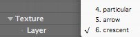 This chooses the source layer that will be used as a 'texture' or custom particle. All other Texture group parameters affect the image loaded into Layer.