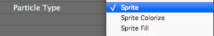 At left, the full Texture group parameters. In middle, the three Sprite options in Particle Type. At right, the three Textured Polygon types.