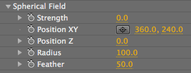 Feather sets the Softness of the edges of the Spherical Field. Higher values make a softer field.